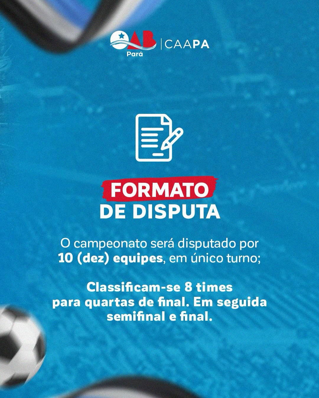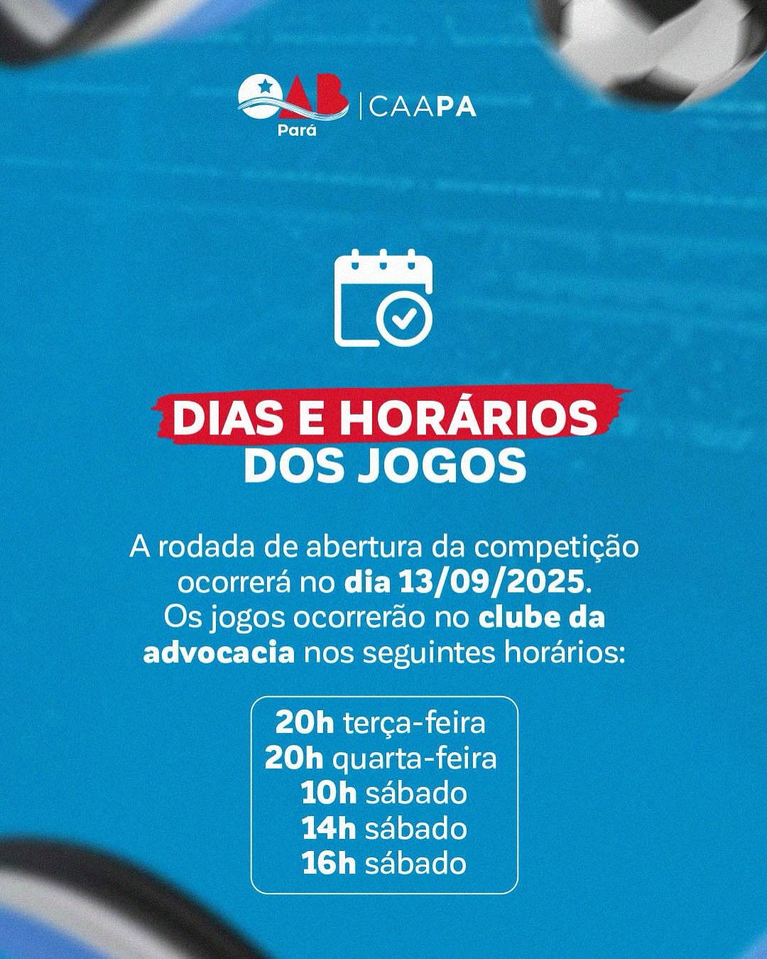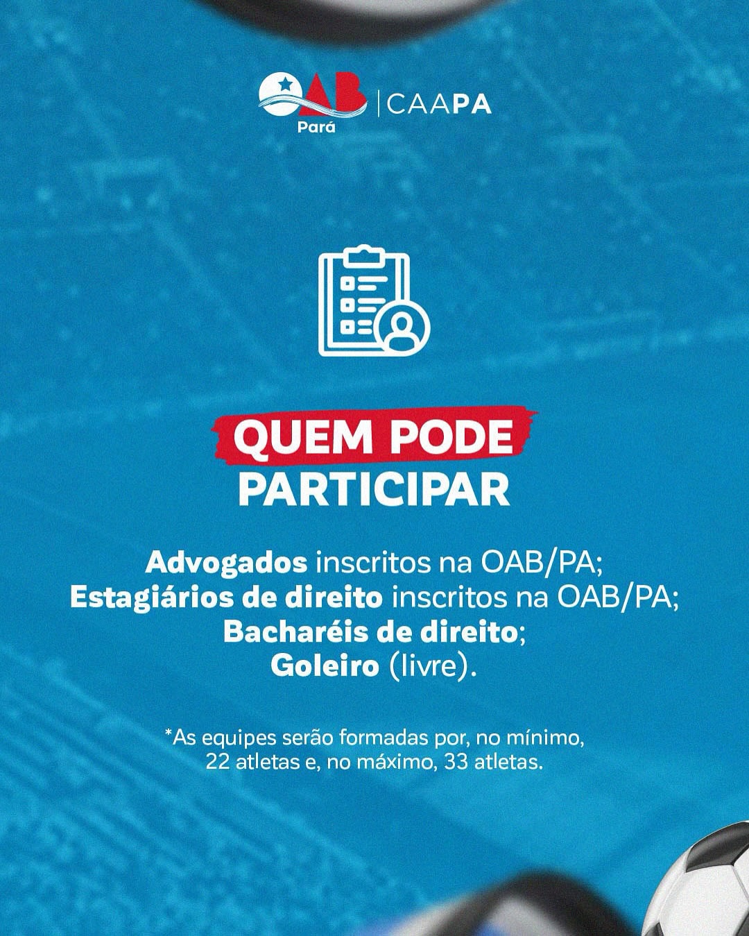 A bola vai rolar na advocacia paraense! Mostre seu talento em campo! Prepare o uniforme, reúna o time e venha fazer história no Campeonato de Futebol OAB-PA 2025!
