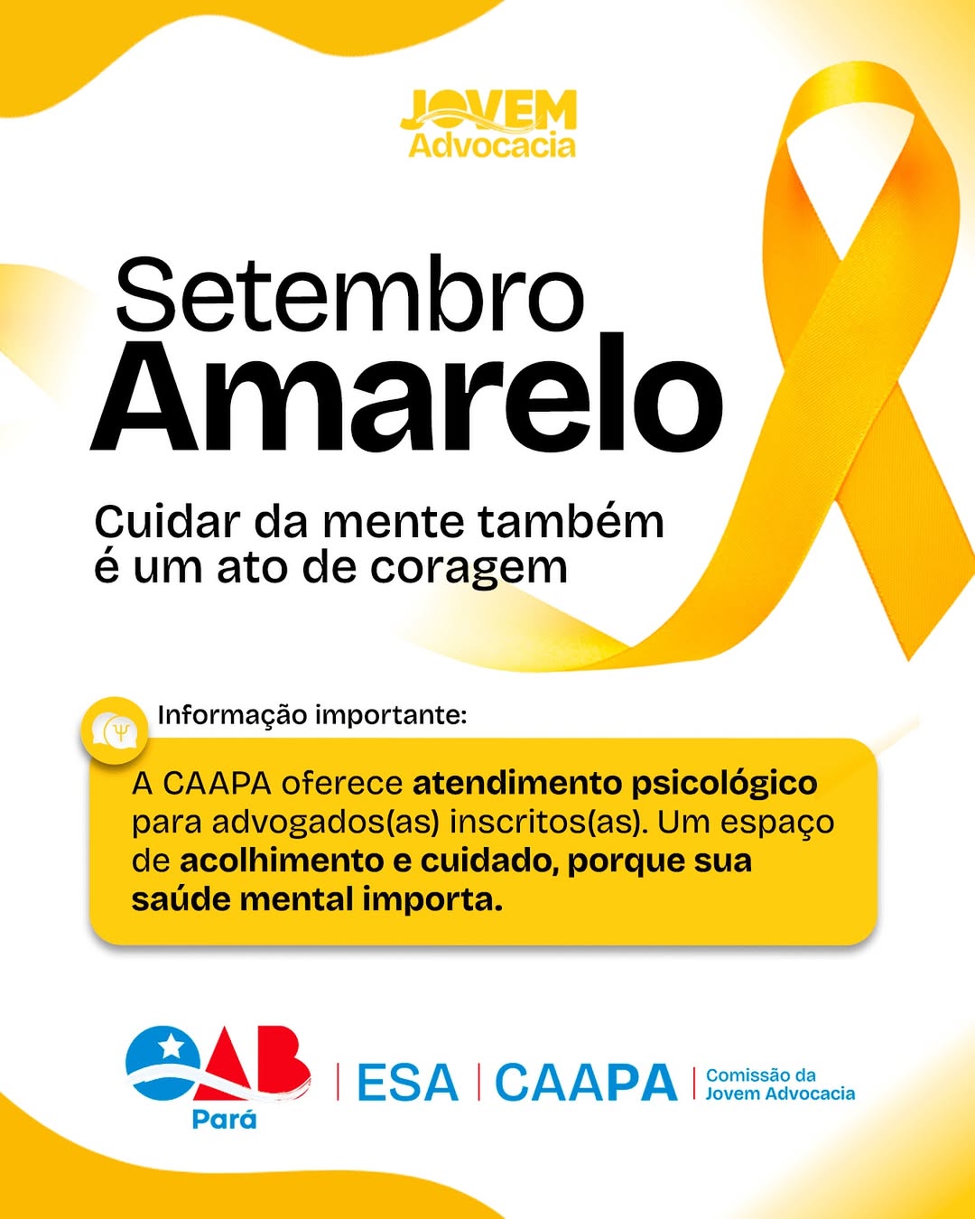 A OAB/PA, por meio da Caixa de Assistência dos Advogados do Pará (CAAPA), oferece atendimento psicológico com acolhimento e orientação para advogados e advogadas.