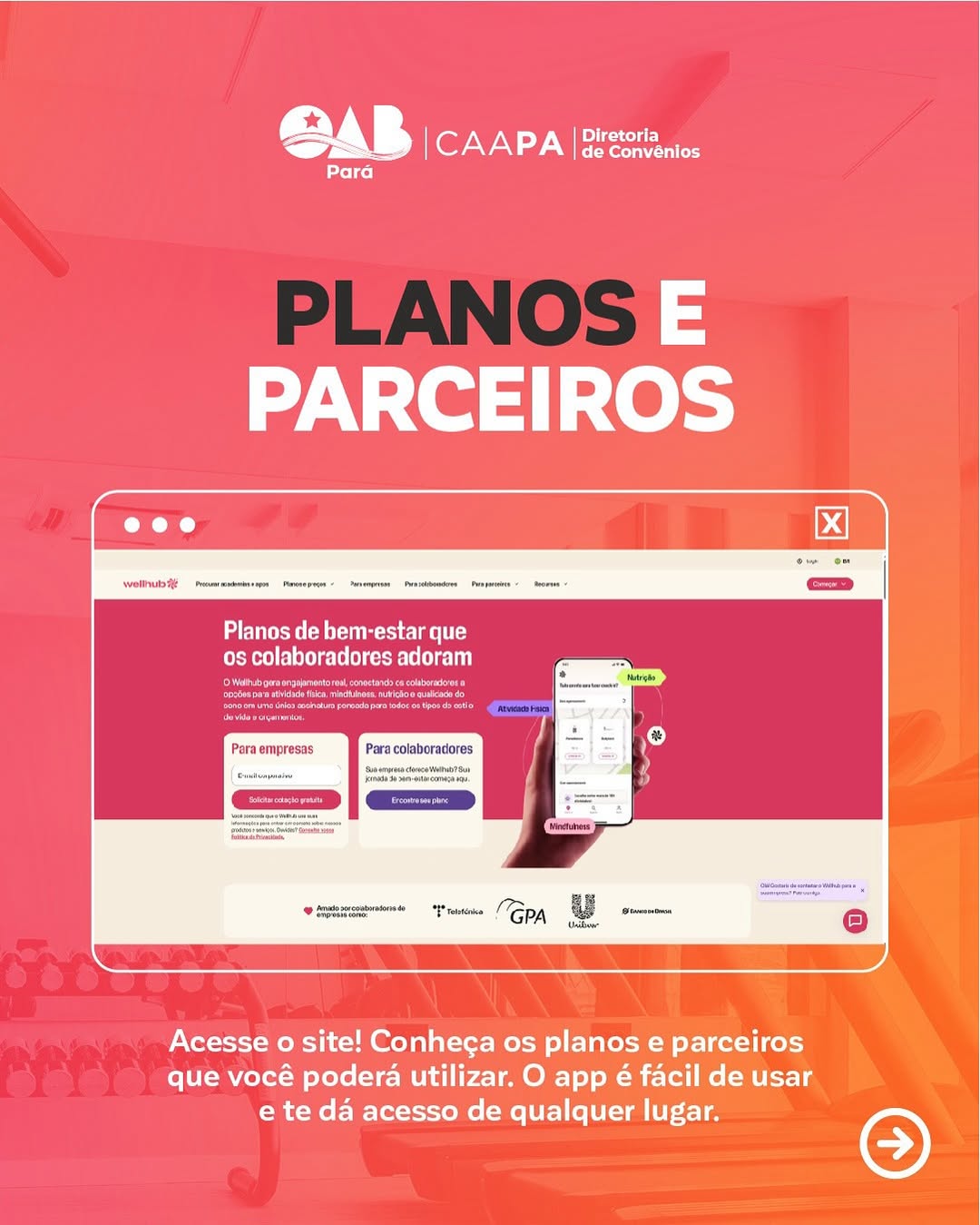 A CAAPA tem o prazer de anunciar uma parceria INÉDITA e transformadora com a Wellhub (antiga Gympass), pensada exclusivamente para você, advogado(a) do Pará!